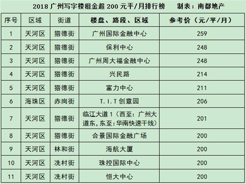收藏 广州:租金最贵的57个甲级写字楼14个减租